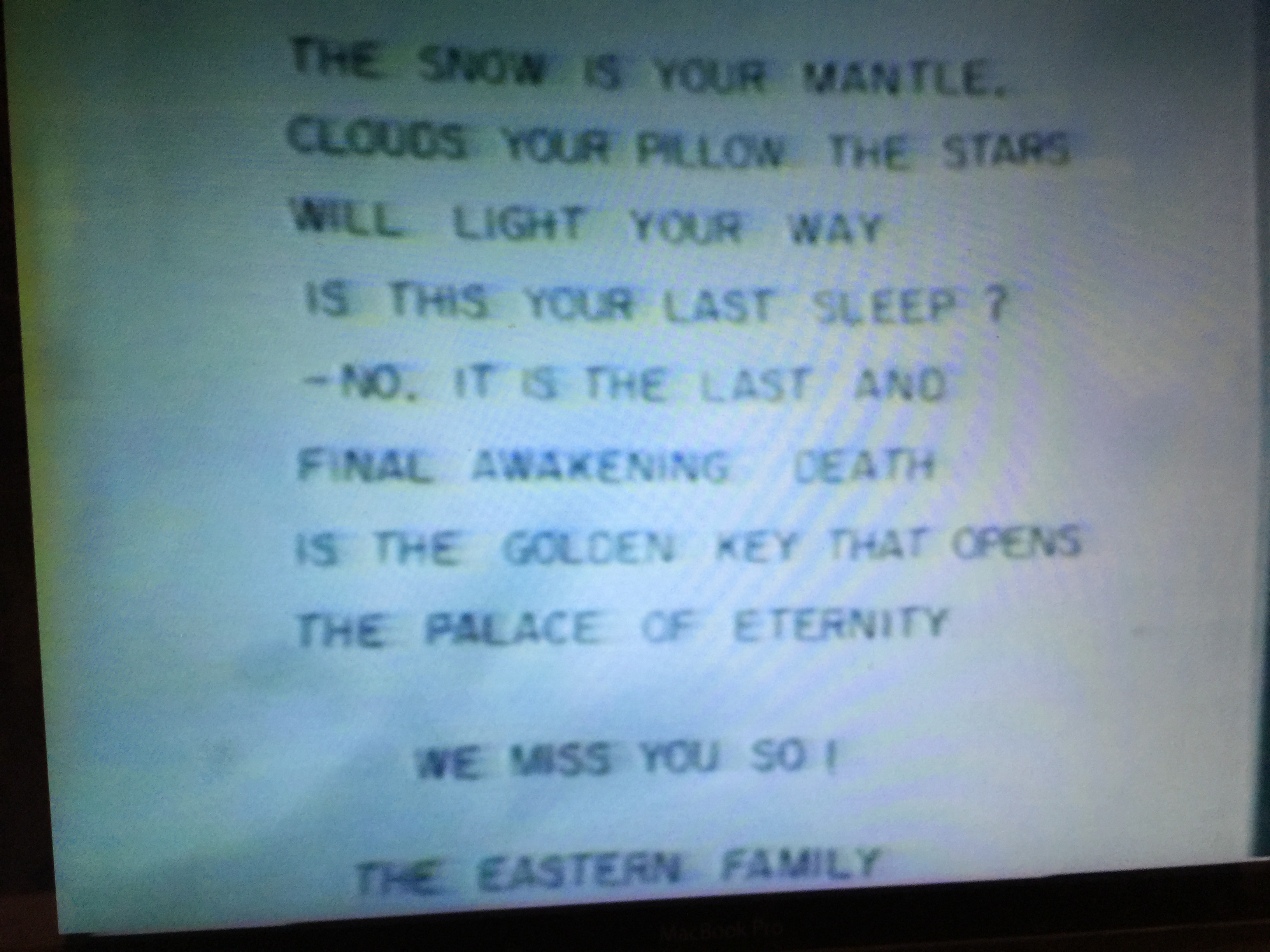Mrs. Kelly’s Memorial survived the 3000 foot drop down the rugged glacier of Mount Illimani with only some tearing in the protective zip lock plastic bag www.operationthonapa.com > Scroll Down to “Waliki waliki mas alto” > Scroll Down 2/3rds to the writing about Judith Kelly’s Memorial. I spoke to Peter Flick-Wright by telephone last summer, in 2016, and he confirmed to me what he saw concerning Judith Kelly’s Memorial. Peter Flick-Wright was the writer of the article “Cliff Hanger” in the November 2016 Issue of Outside Magazine which details finding the wreckage of Eastern Airlines Flight 980 on Mount Illimani.