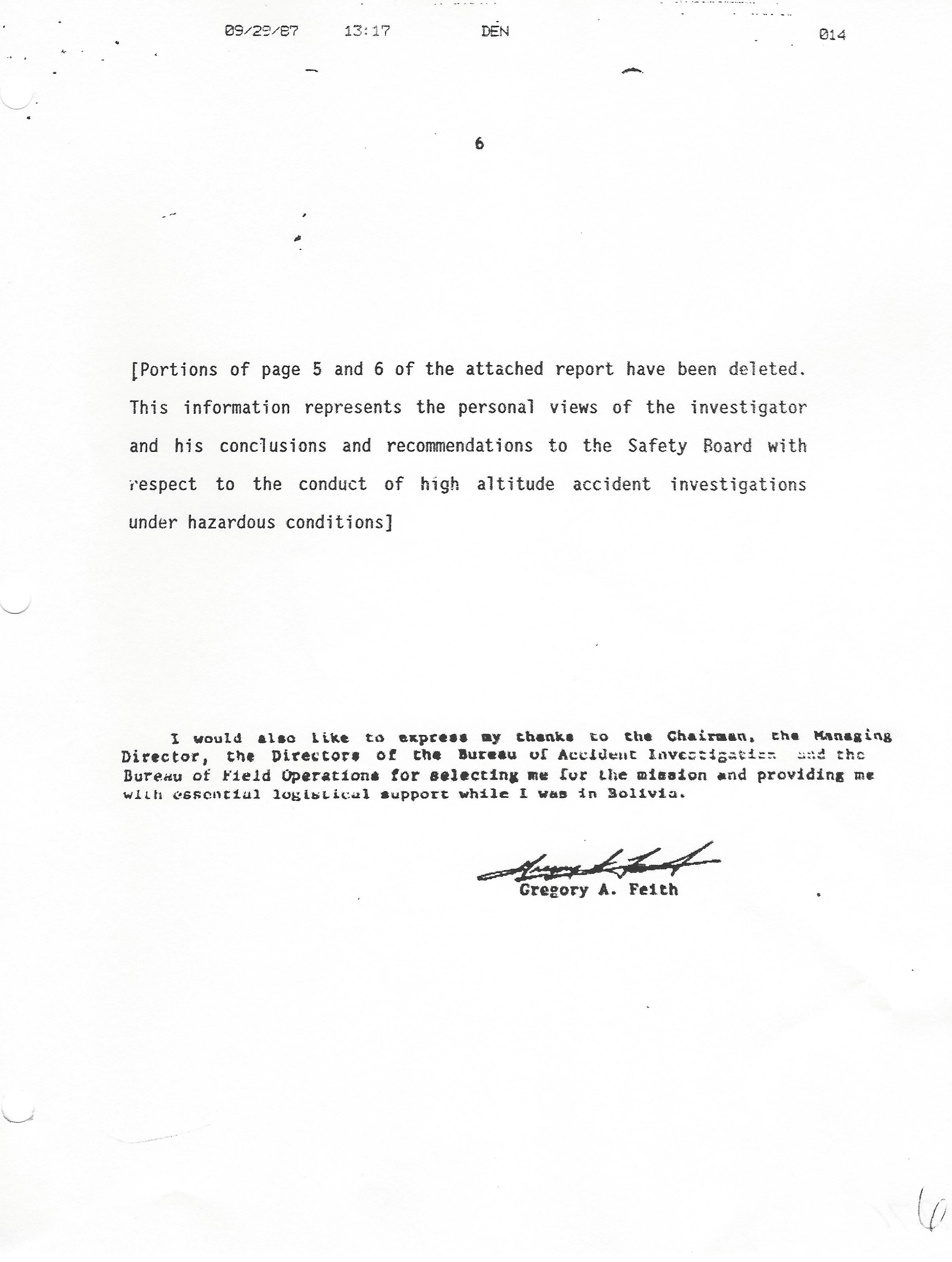 November 5, 1985 Gregory A. Feith, Air Safety Investigator After Action Page 6